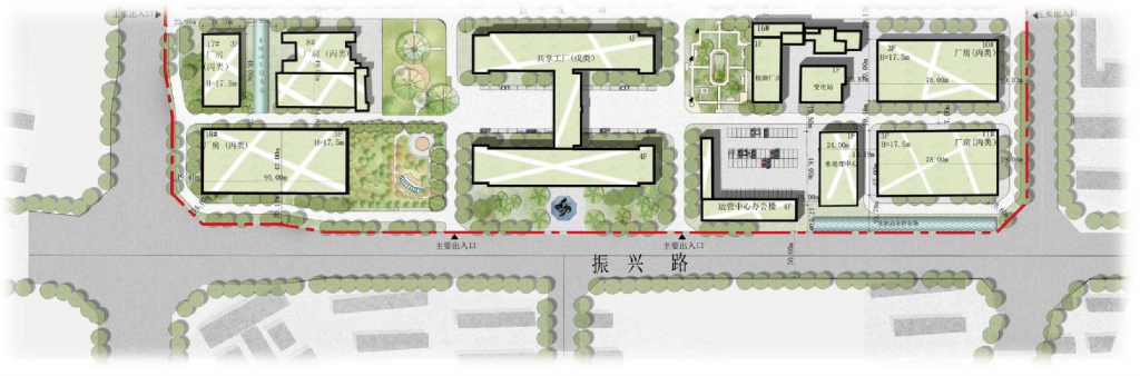 总建筑面积约38万平方米,地上建筑面积约33万平方米,其中厂房总面积约28万平方米,办公配套总面积约4.8万平方米,容积率1.72。